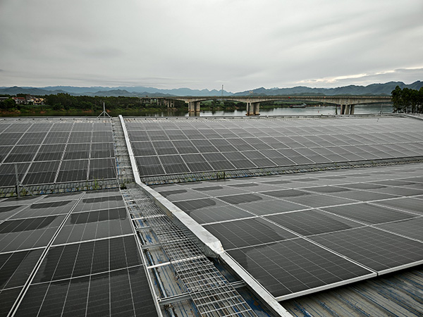 本期項目在華潤水泥(武宣)有限公司建設分布式光伏電站規劃建設容量約為3525.82kWp,采用“自發自用,余電上送”開發方式,布置于華潤水泥(武宣)有限公司混凝土屋頂、彩鋼瓦廠房屋頂、閑置空地、車棚。彩鋼瓦廠房屋頂部分光伏組件選采用單晶硅580Wp電池組件共3051塊;混凝土屋頂、閑置空地、車棚部分光伏組件選采用雙面雙玻580Wp電池組件共3028塊。